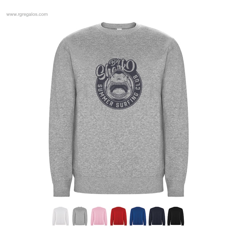 Bonica i pràctica dessuadora en cotó orgànic pentinat i polièster reciclat. Coll, punys i cintureta de punt canalé 2×1. Adorn de costures remallades en espatlla, sisa, coll, punys i cintura. Mitja lluna a l’interior del coll del darrere. Una manera excel·lent de promocionar la marca de l’empresa és amb les dessuadores publicitàries per a empleats com roba laboral o per a clients com a regal d’empresa.