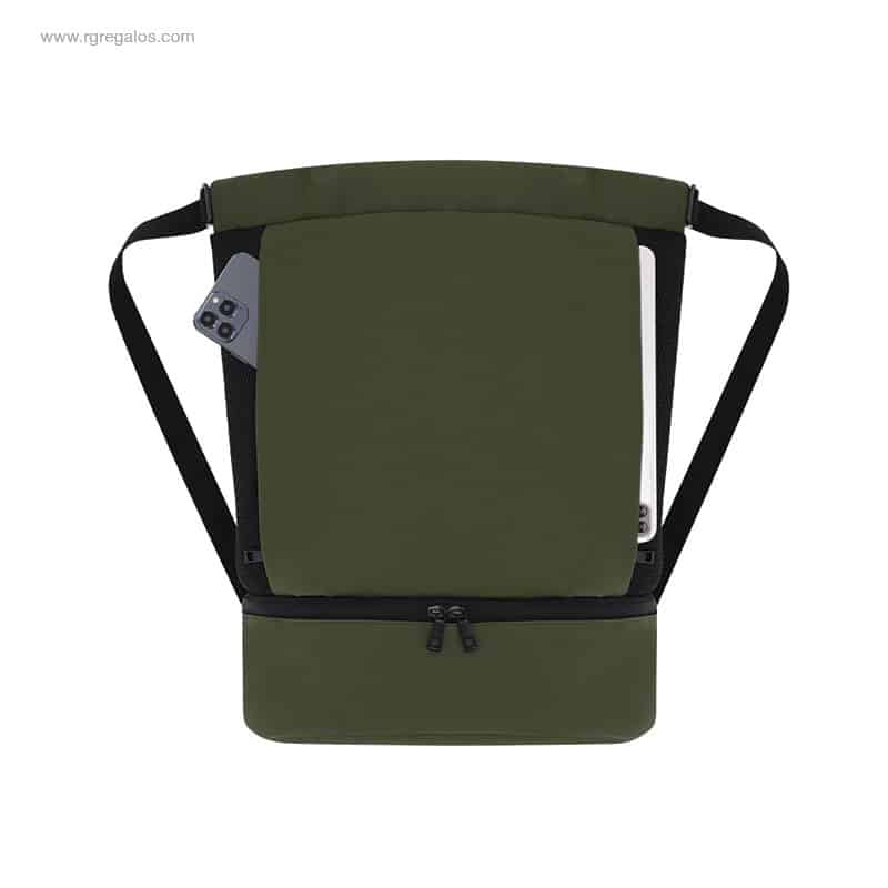 Aquesta motxilla personalitzada destaca per la seva pràctica butxaca inferior per a sabates amb tancament de doble cremallera, perfecte per separar el calçat o altres accessoris. A més, compta amb butxaques frontals d’accés ràpid i laterals transpirables que garanteixen comoditat i funcionalitat. Les seves nanses ajustables permeten un ajust ergonòmic per a més confort.